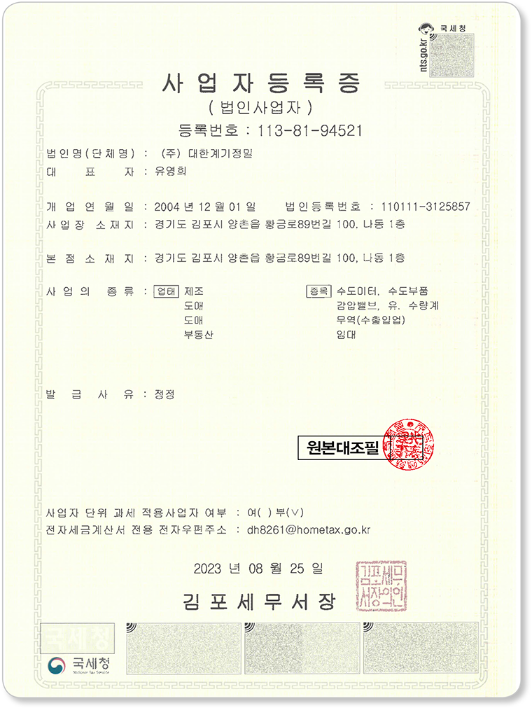 Fax : 031-983-5723 E-mail : dh@dhmeter.com